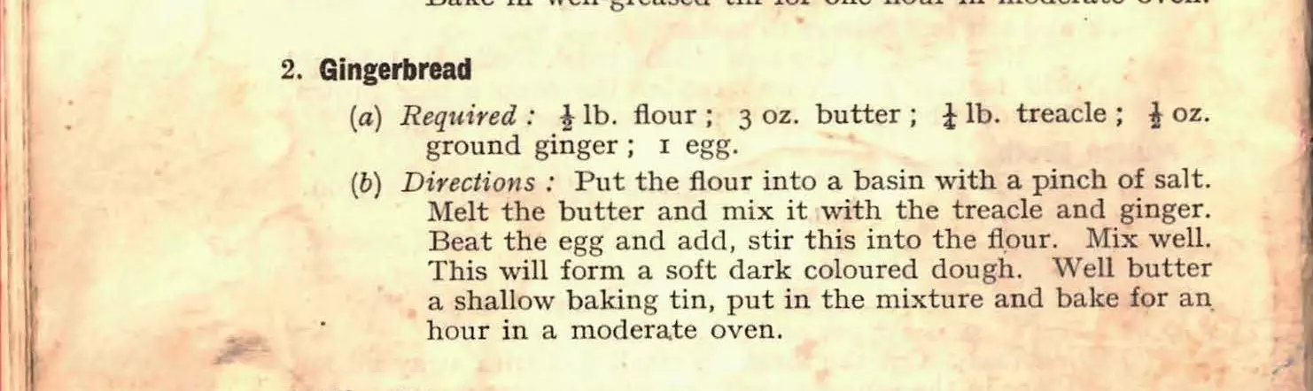 Recipe for Gingerbread, Cadets’ Cookery Notes, 1934, p28