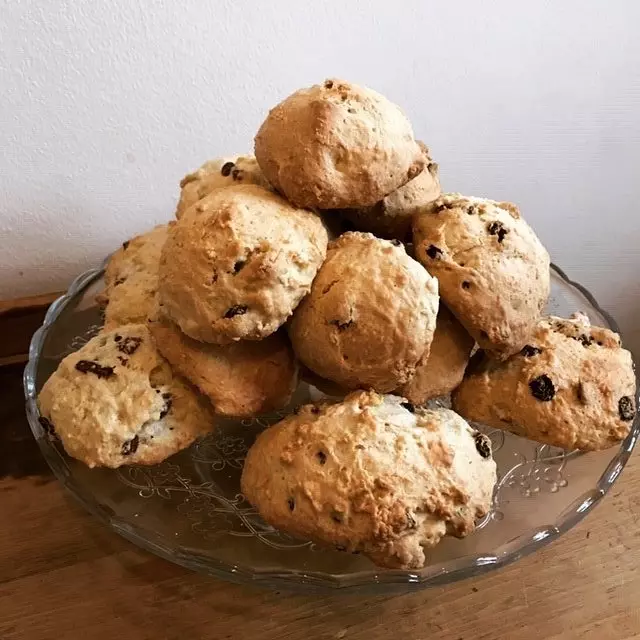 This recipe featured as one of four recommended ‘seasonable and inexpensive’ bakes in The War Cry’s 12 January 1901 edition. I have done quite a bit of baking in my time but as a rock cake novice I was not entirely sure how these would turn out. The ingredients list and mixing method was happily straightforward, however the vague ‘bake in a moderate oven’ instruction did feel reminiscent of a Paul Hollywood technical challenge. After ‘dropping’ tablespoonfuls of my mixture onto a greased and lined tray, I slid them into the oven with an estimated temperature of 180 degrees and a 20-30 minute bake. After 30 minutes I retrieved a batch of sixteen enormous, golden-topped, and steaming rock cakes from the oven.