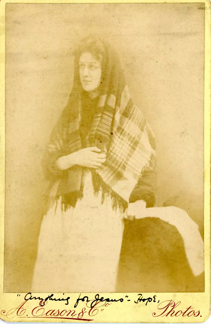 A case in point is our beautiful collection of Victorian cartes de visite and cabinet cards. These are studio portraits of women, men and children proudly wearing their Salvation Army uniforms but their identities have all been lost in the mists of time. The biggest clue we have to go on is the address of the photography studio where the picture was taken as this could indicate which corps the person attended. However, as very few membership registers (known as soldiers’ rolls) have survived from before the twentieth century, this is little help in tracing the person’s identity. Even if the rolls had survived, we would need other clues if we were to have any chance of linking the person in the image with a name on the roll— for example, badges indicating a particular position of responsibility or another known photograph of the individual in question to compare against.