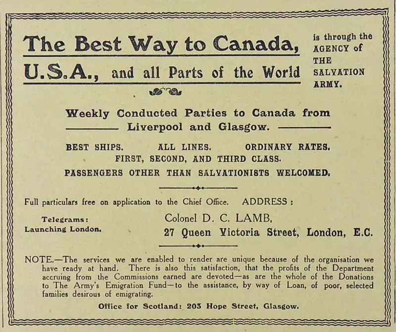 [3] EM/1/1 'Empire Reconstruction: The Work of The Salvation Army Emigration-Colonization Department 1903-1921', p.10.