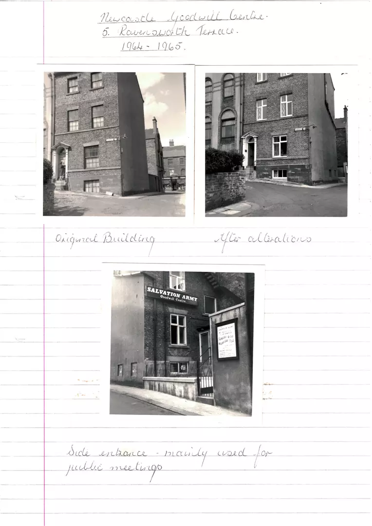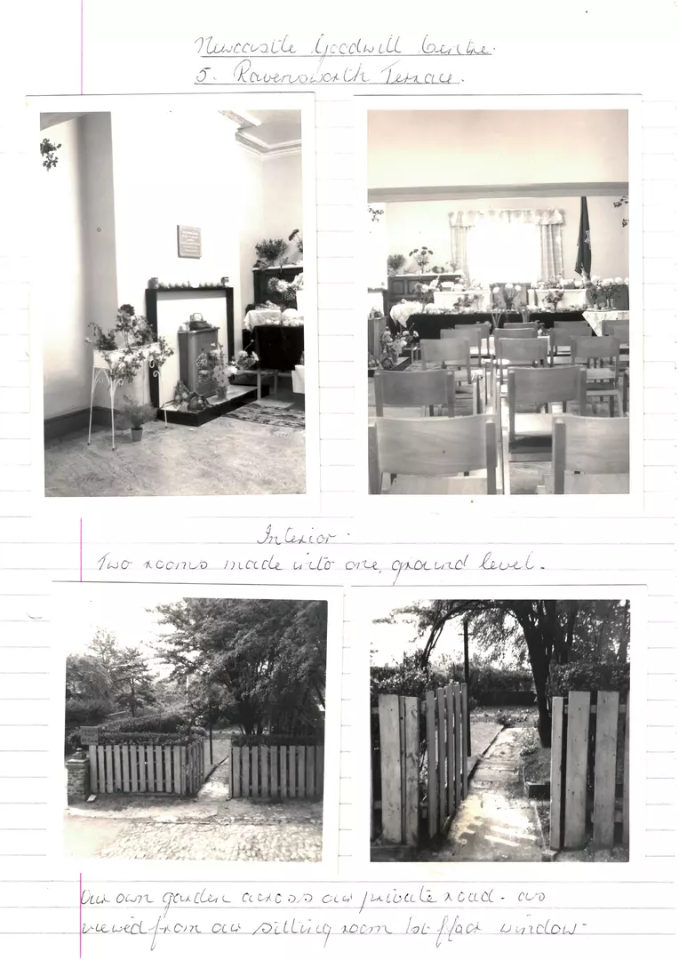 In the course of her long career as a Goodwill officer, Lilian lived in the most deprived areas of several British cities providing all manner of assistance to her neighbours. Her papers document activities as diverse as childminding, visiting the sick, negotiating with debt collectors, writing to MPs on behalf of families threatened with eviction and acting in an advisory capacity to local authorities. She spent time living in London, Hull, Southampton, Sunderland, Cardiff, Brighton and, from 1959 to 1965, Newcastle. This meant that she oversaw the transfer of the Newcastle Goodwill Centre from 34 Grove Street to 5 Ravensworth Terrace in 1964 and was the first officer to live and work in the new Sir Cecil A Cochrane Memorial Goodwill Centre.