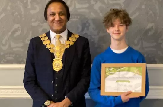 A teenager who helped set up drop off points to collect donations of school uniform has been recognised as a recycling hero.