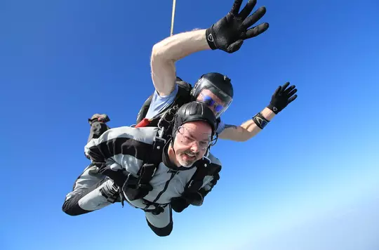 Captain Kenneth Guest jumps out of an aeroplane to raise money for the church and charity’s work in Harpenden.