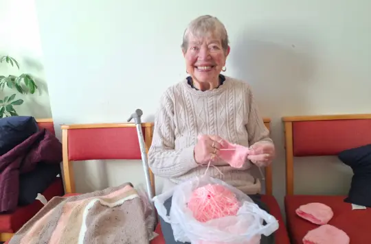15 elderly knitters, aged up to 93, celebrate 10 years of friendship and 2,000 handmade items for Gloucester Royal Hospital.