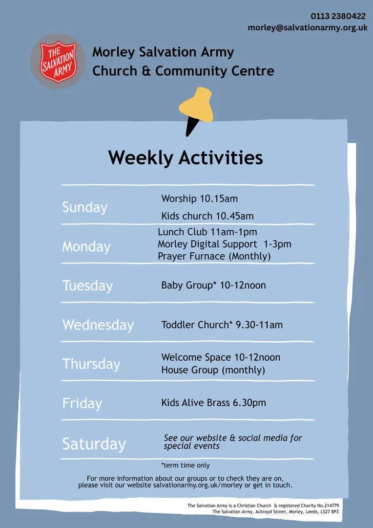 A group for toddlers & their carers, including free play, craft and short group time of singing, story and movement with a Christian message. Please get in touch for more details, or just turn up on a Wednesday morning during school term time. £2 per child (additional siblings from the same household £1) Term-time only.
