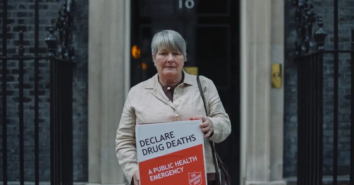 A mother who lost two sons to drugs handed a petition from The Salvation Army into Downing Street today calling for the rise in drug deaths to be treated as a public health emergency.